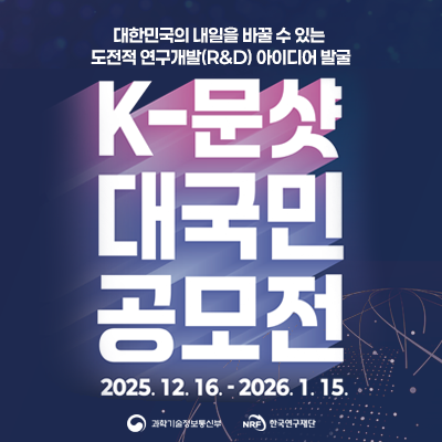 자세히보기창의적이고 혁신적인 국책연구사업(바이오의료, 나노소재원천, 첨단융합, 기후변화대응, 사회문제해결 등) 추진을 위하여 일반국민 및 전문가 분들의 참신한 아이디어와 기술 제안을 모집하고 있습니다. 많은 관심과 참여 부탁드립니다.